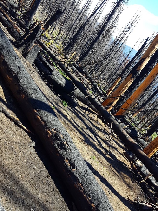 Ujabb leegett resz, ahol kerulgetni kellett a kidolt fakat. Mar latszanak az uj elet jelei: