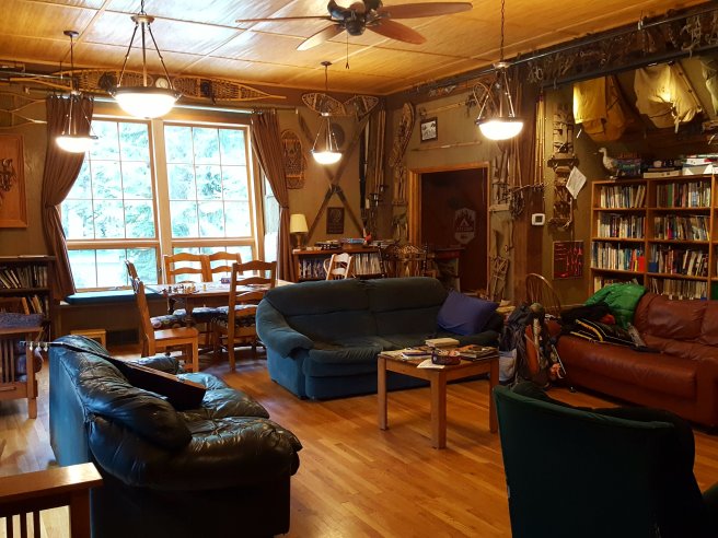 Delutan 4 korul ertem el Snoqualmie-t. Beszereztem a sajtomat, majd a benzinkut elotti helyi arus, azutan, hogy kaptam tole egy ingyen sort, felajanlotta, hogy elvisz a szallasomig. Nem volt messze, kb 1 km, de minden merfold felesleges amit nem a PCT-n teszek meg, elfogadtam a fuvart. A szallasom egy ‘ski lodge’ a leiras alapjan hostel stilusban. Ha a vilag osszes penze az enyem lenne, akkor is hostelekben szallnek meg hotelek helyett (nyilvan ott, ahol ez a biztonsagos kategoriaba esik). Volt egy kisebb vitank a ferjemmel, amikor Thaifoldon a naszutunkon is ragaszkodtam egy bangkoki hostelhez, nem penzugyi megfontolasbol. Ha valaki itt arra gondol, hogy ‘de hat ez a naszutad’, az meg tovabbra sem erti, nekem mirol szol az elet. Ilyen ez, rosszul viseli a kis lelkunk a meg nem ertest. (Vegul kiegyeztunk egy hostel 2 fos szobajaban.) Ezeken a helyeken mindig tortenik valami, tele van erdekes emberekkel es a sztorijaikkal. Itt lehet jo tanacsokat kapni a kornyeket illetoen, olyanokat, amiket nem talalsz meg a helyi top10-es utikonyvekben.