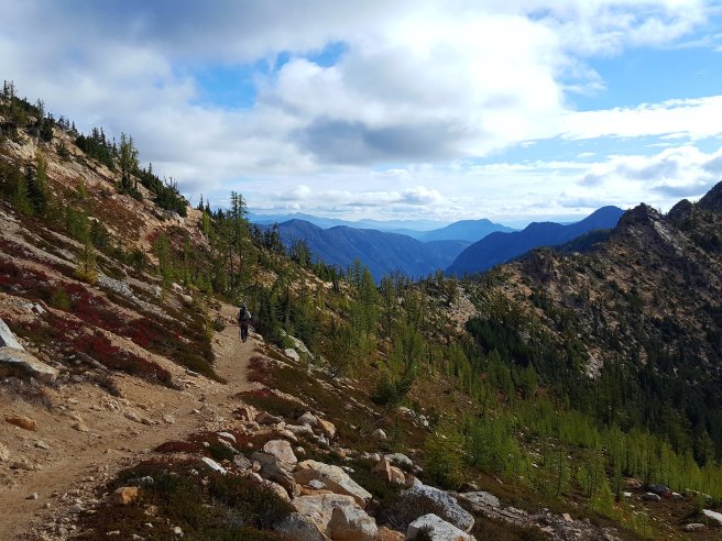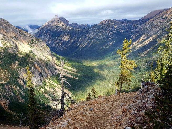 Folytattam tovabb a felfele menetelt. Orulok, hogy nem haladtabb tovabb ejszaka, a maszas tetejen gyonyoru kilatas vart. PCT, te csodas.