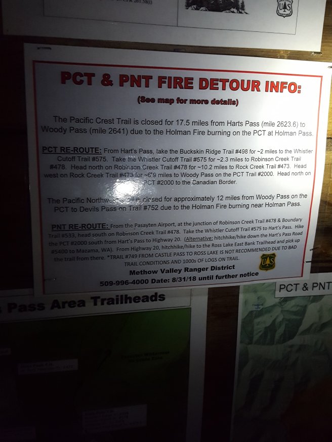 Harts Passt mar csak sotetedes utan ertem el. Ez az utolso nyoma a civilizacionak a hatar elott. Trailhead, ide jonnek kocsival a hetvegi turazok es indulnak el kuldonbozo 1-2 napos turakra a kornyeken. Itt kezdodne valahol a tuz miatti kerulo osveny, de az elozoekkel ellentetben nem talaltam nagy piros szalagokat es nyilakat.