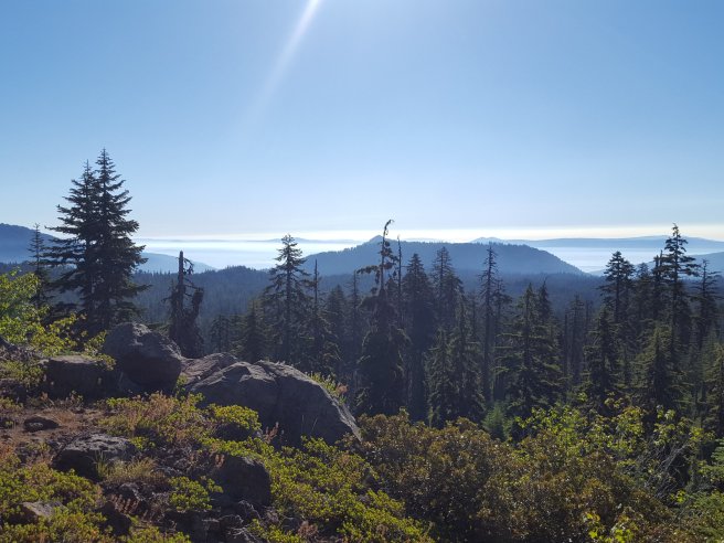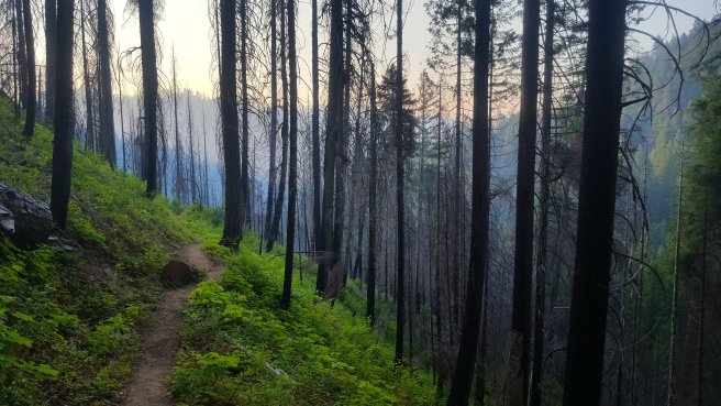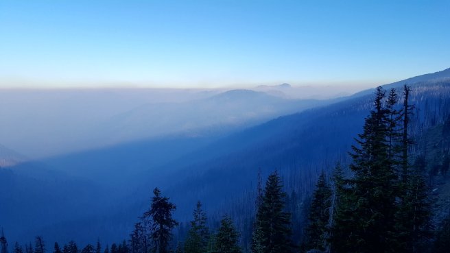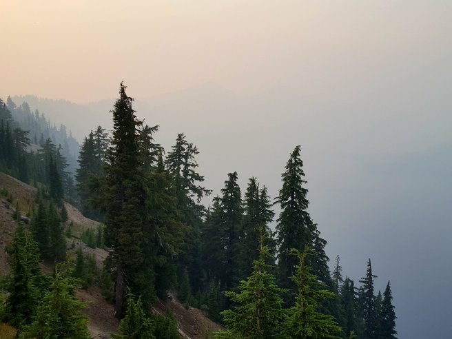 Taska nelkul felmentem (szinte repultem) az egyik off trail kilatohoz. Watchmen kilato. Regen innen figyeltek az erdotuzek kialakulasat. Sajnos a masik iranyba nem lehetett jol latni. Lefele talalkoztam az elso koran kelo turistakkal (amugy tenyleg koran kelhettek, ha 8-kor mar turaztak), az egyedullet hatranyai: marad a szelfizes.
