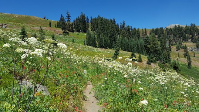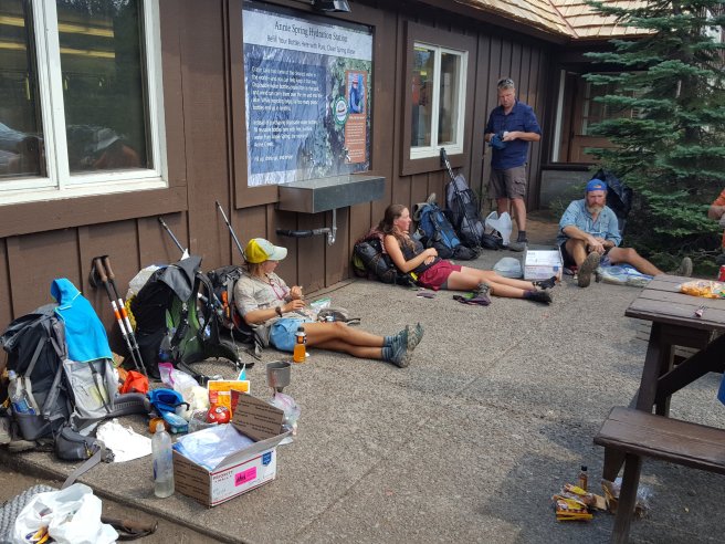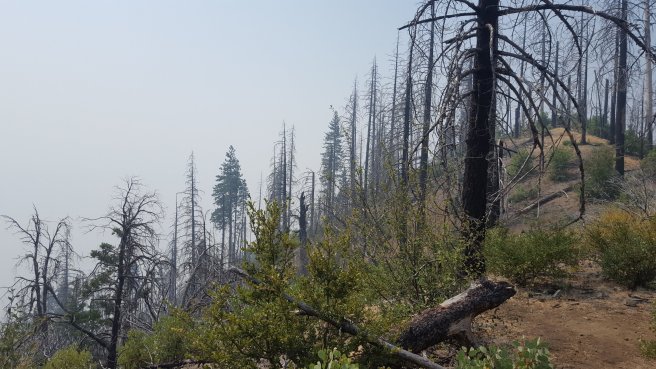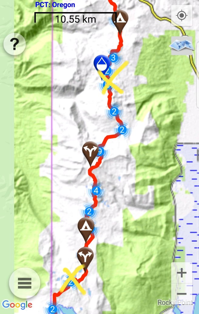 Bar vegig latni a tavat, lemenni nem lehet, mas vizforras pedig nincs a kornyeken. Egy trail angel tart karban ket cache-t is. Ezt kicsit beneztem, az elso utan azt irtak ‘there is another cache 0.6 miles later’ csak elfelejtettem elolvasni a mondat masodik felet ‘…from the national park boundary’. Tehat kb 1km-re van viz, a nemzeti park hataratol… ami meg 14 km volt az aktualis poziciomtol. Nalam pedig volt par deci viz. Akkor a mai ebed delutan 4-re csuszik, ha sietek… Valamiert ez nem ugy zajlott, mint a Vadon c. filmben. Mikor megtudtam mi a helyzet viz teren, elkezdtem orankent beosztani a maradekot es iszonyu lassu haladas helyett az atlagosnal sokkal gyorsabb lettem. Ki erti ezt? Termeszetes elertem a vizet kulonosebb gond nelkul, hiaba a meleg es a kb 2L-rel kevesebb mint optimalis vizmennyiseg. Csak okoztam magamnak egy kis felesleges fejfajast.