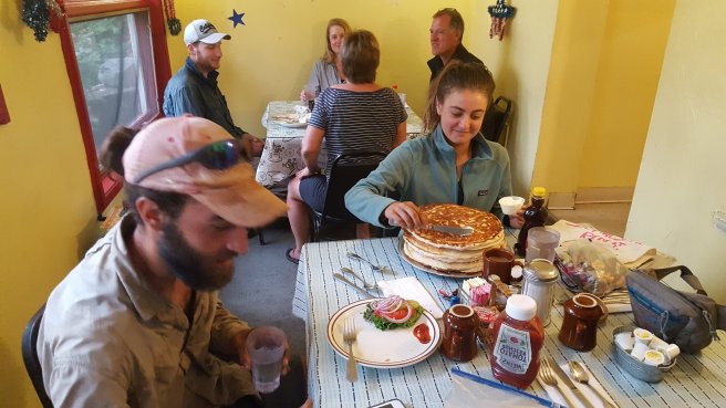 Az esti satorhelyemet pedig a viz es internet-szituacio hatarozta meg, mivel vagy 5 napja nem tudtam kommunikalni senkivel otthonrol. Az ilyen kiveteles alkalmakkor, mikor internettel satrazom reggelente Tamas (a ferjem es egyben szemelyes trail angelem – aki nem ismerne) szorakoztat. Milyen erzes hallani a ferjem hangjat tobb nap elszigeteltseg utan? Ez a megfizethetetlen kategoria. Jo erzes valakinek elso kezbol elmeselni epp milyen eletre szolo elmenyeket szereztem, akar pozitivak, akar negativak. Jo erzes hallani az otthoni sztorikat, akkor is, ha epp nem tudok ott lenni. Ezt nem lehet jol leirni, ezt at kell elni. Marmint, ne az en ferjemet hivjatok ilyen helyzetekben, mindenki gondolja at szepen ki a legfontosabb ember az eleteben es ot keresse, akkor fog mukodni :).