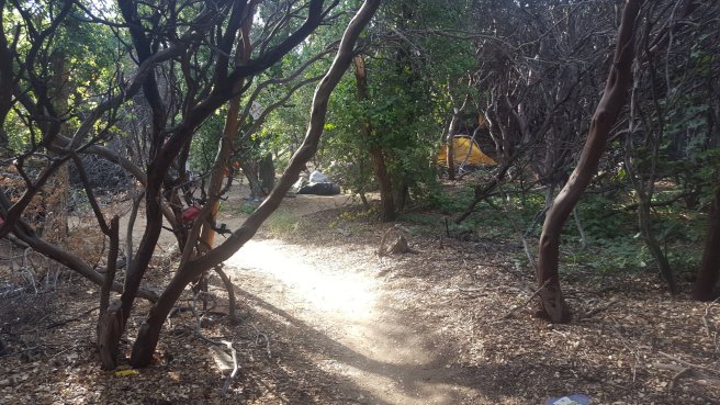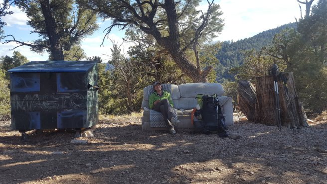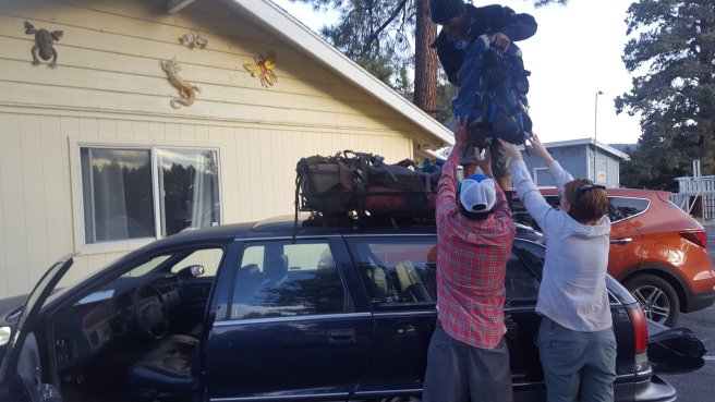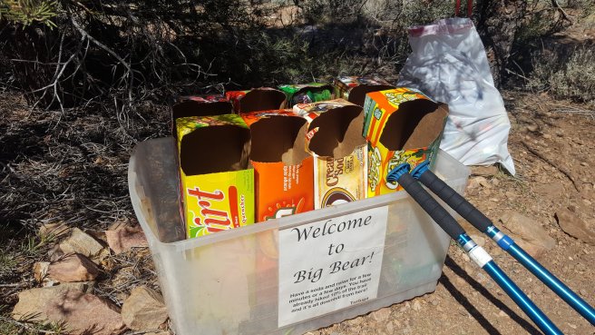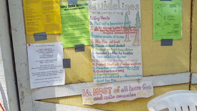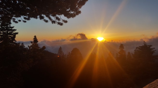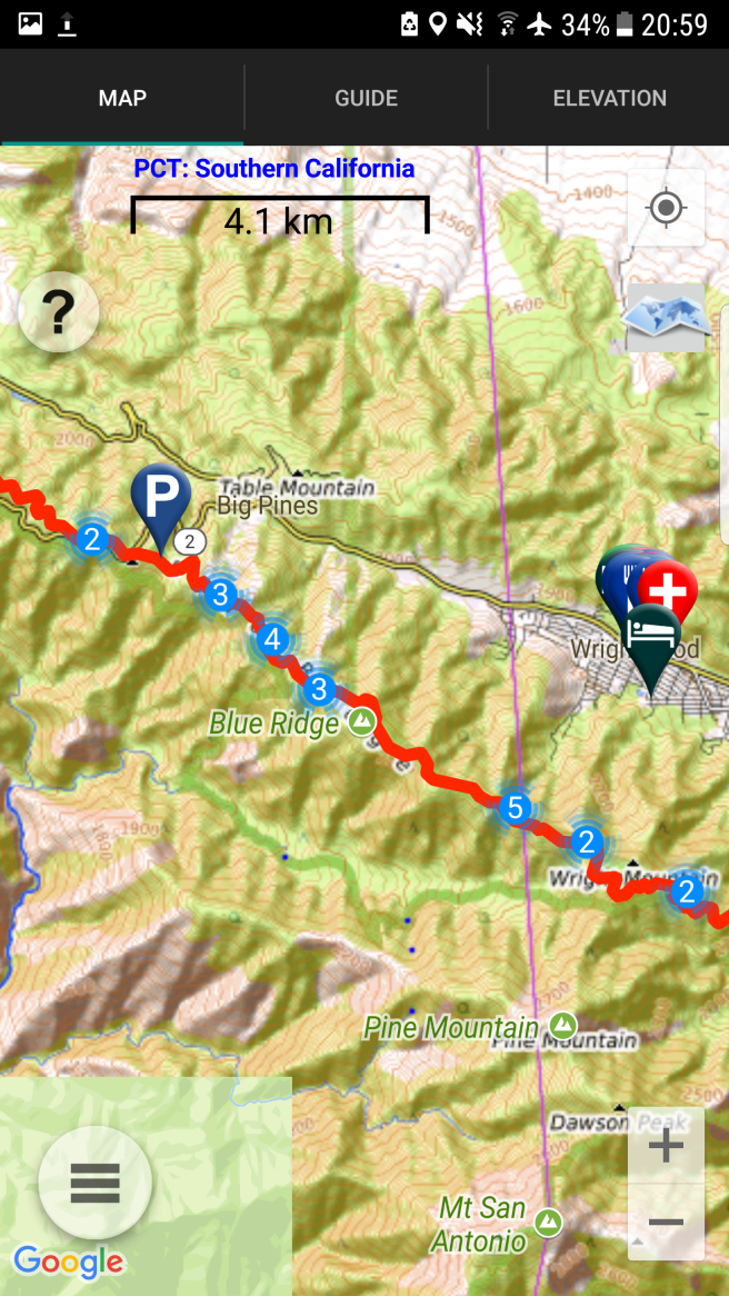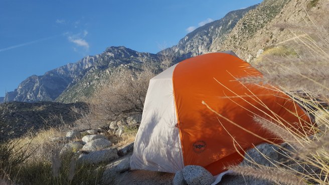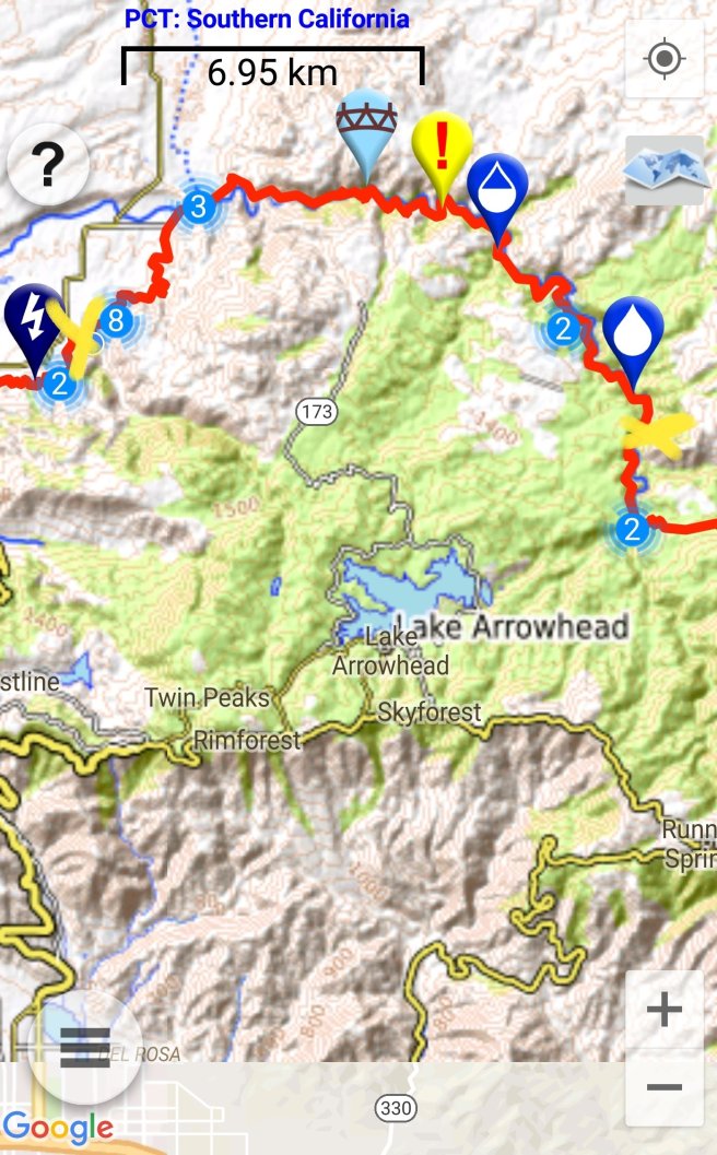 5 ora alvas utan kicsit szenvede keltem fel, hogy a koran induloktol megerdeklodjem mi a kovetkezo szakaszra a tervuk. Mivel a tegnapi napom a varosba erkezes utan eleg rohanos volt, nem tudtam eleget beszelgetni ahhoz, hogy magabiztosan induljak el kaja- es vizugyileg. Megtudtam, hogy 3 utvonal is vezet vissza a PCTre, ill. sokan terveztek felmenni a San Jacinto csucsara is ami egy kis kitero, de Del-Kalifornia egyik legmagasabb hegye es gyonyoru a kilatas. Illetve, kb 2 nap mulva vihar jon ami fent az osvenyen 2700on havazast jelent (igen, meg mindig a sivatagban vagyok), akkorra mar nem artana valahol lent lenni par szaz meteren. Nem volt mas valasztasom tehat, mint hogy utra keljek, mar csak a kozelgo vihar miatt sem. Kivalasztottam a legrovidebb felfele vezeto utat, a Deer Springs trailt (lenti terkepen kekkel jeloltem, nagyjabol merre haladt az osveny). Ez is 7km volt, ill. nem a ‘kenyelmes’ kis PCT stilusu osveny volt: meredek, sok kidolt faval es egyeb termeszetes akadallyal amin mind at kellett maszni. Ez az 5 napi kajaval es 5 liter vizzel nem volt tul kellemes. Valahogy mashogy telnek a kilometerek a PCTn es mashogy minden egyeb kitero turautvonalon. 1600m magasrol felmasztam 2700m-re, ahol vegre becsatlakoztam a PCT osvenyere. Mire elertem az elagazot a San Jacinto csucsa fele, mar 3 ora volt (delben tudtam csak elindulni). Mar reggel lattam, hogy elkezdtek jonni a felhok nyugat felol, de nem tunt ugy, hogy ebbol vihar lesz. Plusz ugy szamoltam, hogy belefer a csucsmaszas es sator allitas lejjebb az osvenyen naplemente elott. Raadasul megint osszefutottam Iannal, aki ugyan azt tervezte mint en, taskat lerakni az elagazonal es felmenni, majd az osveny menten satrazni. Szuper, nem vagyok egyedul, mehetuk!