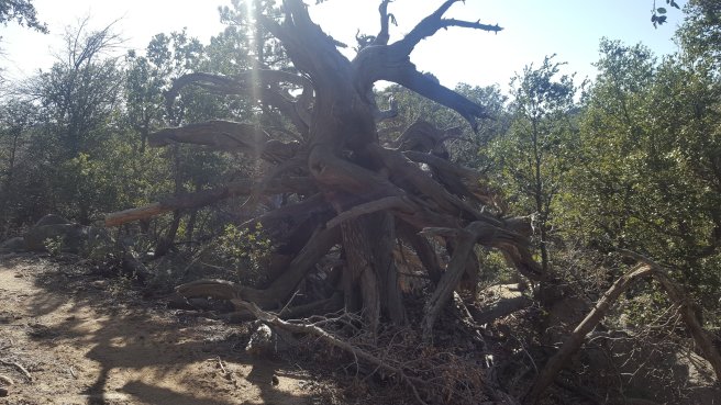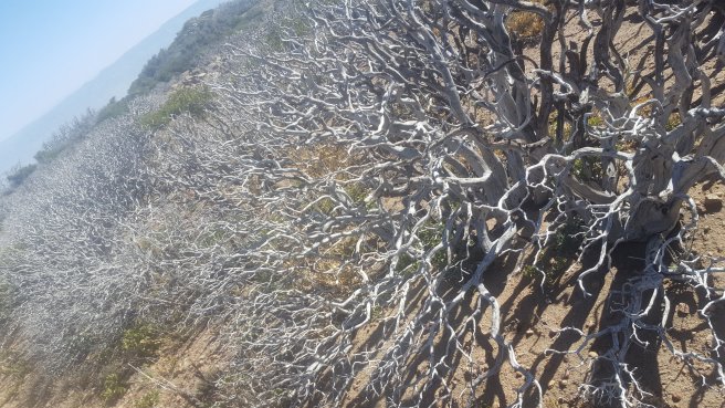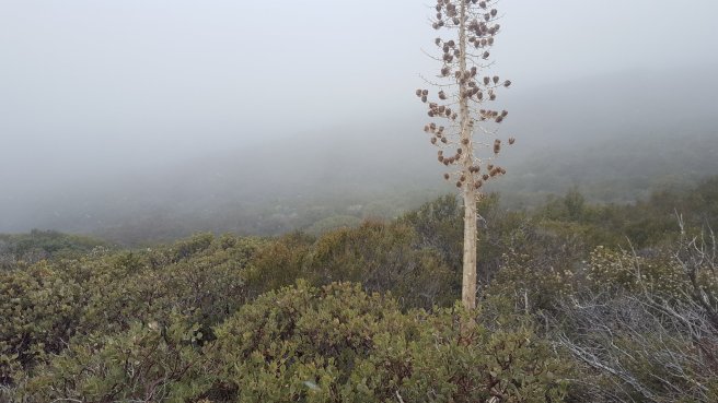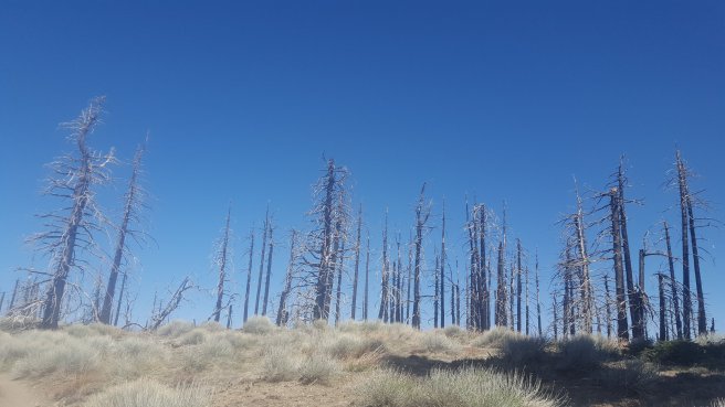 A mai napot turazas szempontjabol nem terveztuk hosszunak. Ezt nem tudtam elore ill. alapbol is tulterveztem magam kajaval (foleg, hogy a burrito utan nem sokat tudtam enni), igy feleslegesen cipeltem nehany kilot Warner Springs ota. (Mindig csak a kovetkezo szakaszra tervezek, reszben egy telefonos app – Guthook- reszben a tobbi turazo informacioi alajan. Altalaban a masodikbol lehet tobbet megtudni. Olyan ez mint az egyetem: beszelgetni kell sokat, az mar fel siker:)). Szoval, aznap mar tudtam, hogy nem lesz hosszu a mai tura, mert a PCT egy szakaszat itt sajnos lezartak korabbi erdotuz miatt. Mar vagy 7 eve volt, jelenleg hagyjak a termeszetet ujra eletre kelni. Sajnos amerre jartunk, ott is volt korabban tuz: