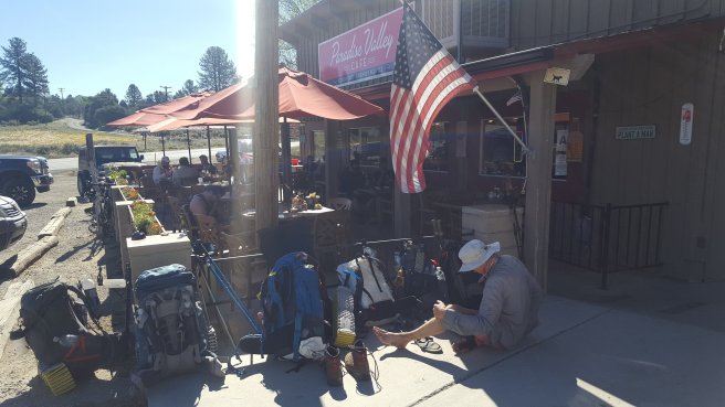 A varakozas kozben az egyetlen par akivel talalkoztunk, egy idosebb amerikai hazaspar aki feljott nehany orara setalni, felajanlotta, hogy elvisz minket Idyllwildba. Ezzel megusztuk a stoppolast. Penzt nem fogadtak el. Meg mindig nem ertem, hogy miert akar ennyi ember ennek a sok koszos, budos, onzo turazonak segiteni. Nem csak elvittek minket a varosba, korbevittek minket a varos fo reszein es konkretan a kemping PCT turazoknak kijelolt resze elott raktak le. Ja, hogy nem az individualista, versenyorientalt amerikaban vagyok ahol mindenki atgazol a masikon, csak azert, hogy neki jobb legyen? Ugy tunik a kozgazdasagtan konyvek es cikkek nem fednek le mindent…